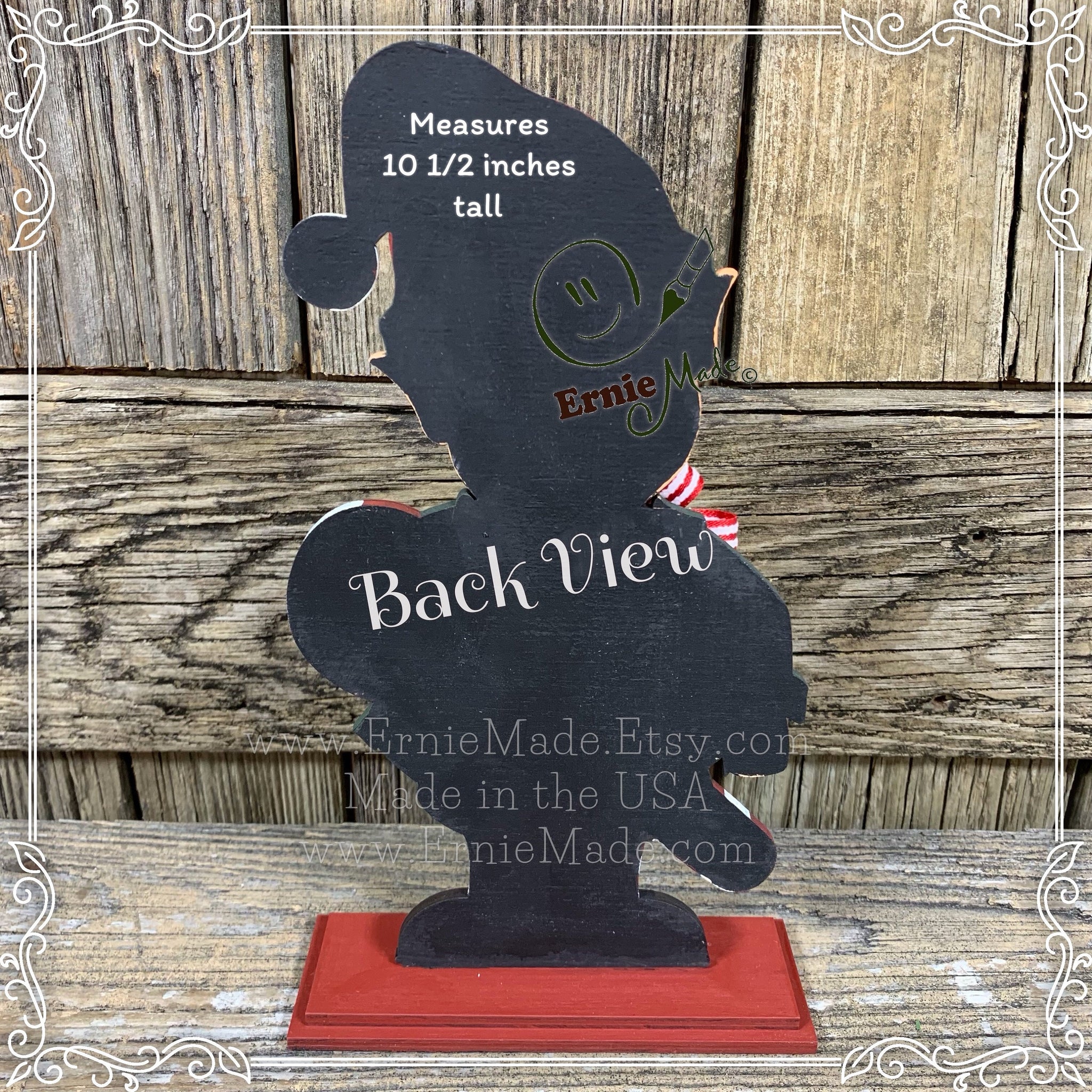 Welcome Christmas with this whimsical little elf decoration! This cute wooden elf is the perfect accent piece for your shelf, table or tiered tray this Holiday Season.