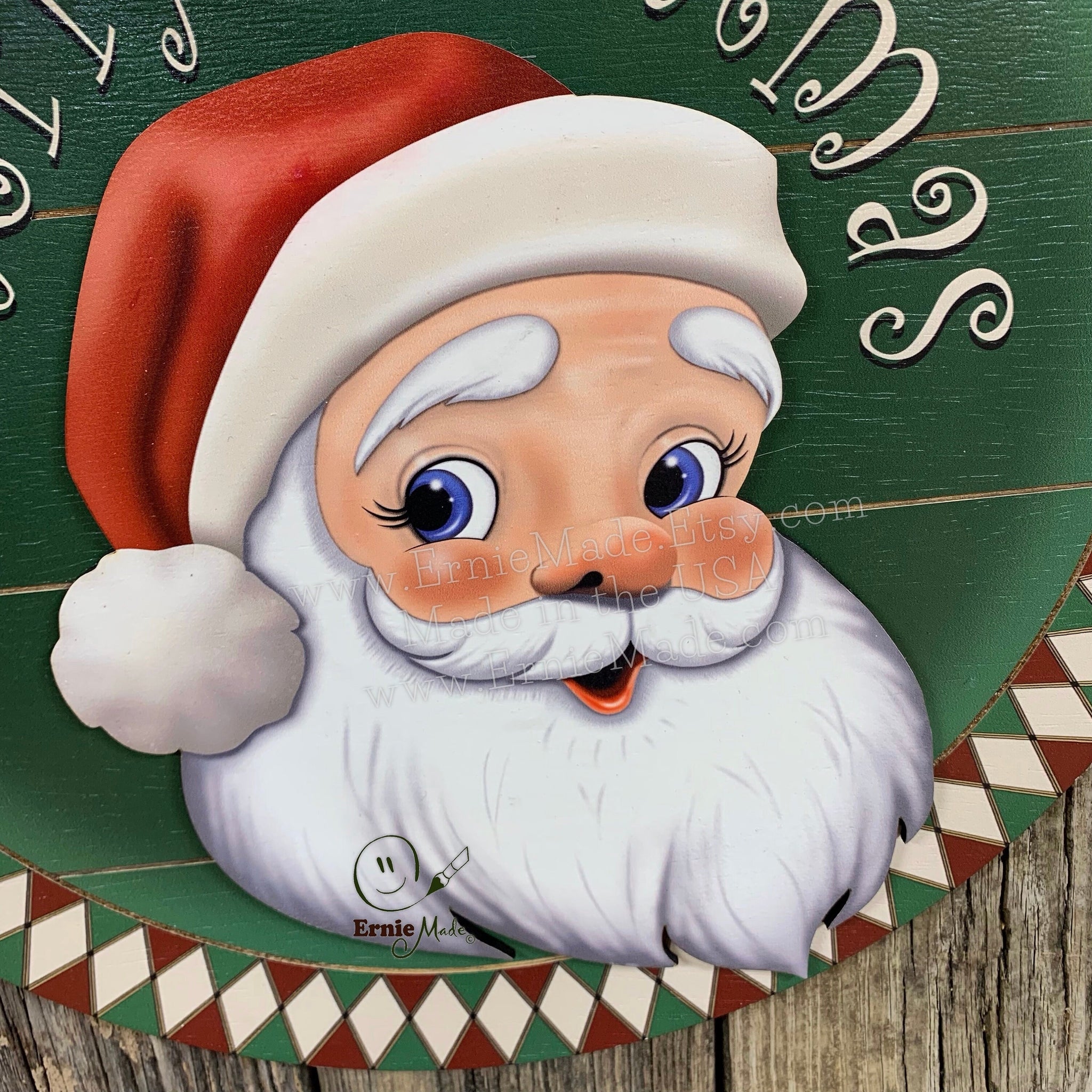 ♥️ The painted sign is embellished with a harlequin red and green rim. The sign reads "Merry Christmas". The sign and Santa are constructed of wood and are varnished for protection.