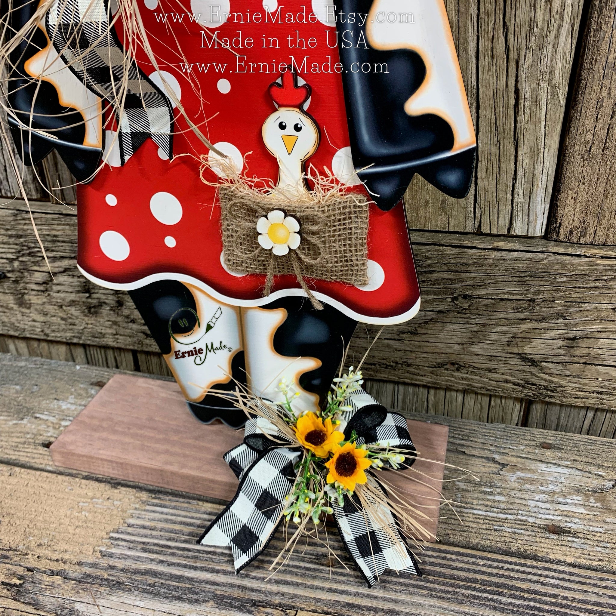 🌻 This cow decoration can be displayed on a shelf, table, or a mantle. This whimsical Cow design would make a wonderful addition to your farmhouse decorating.