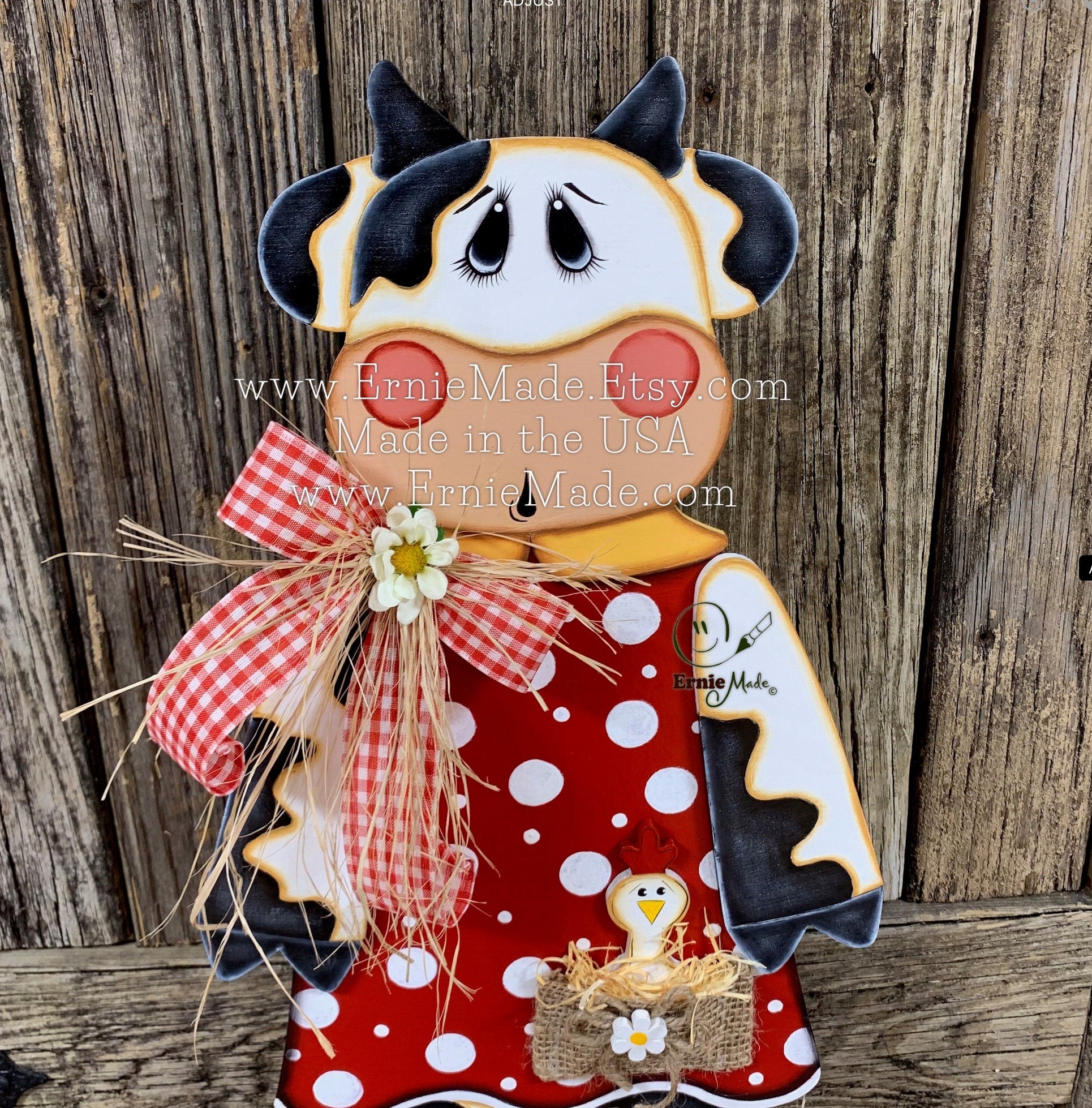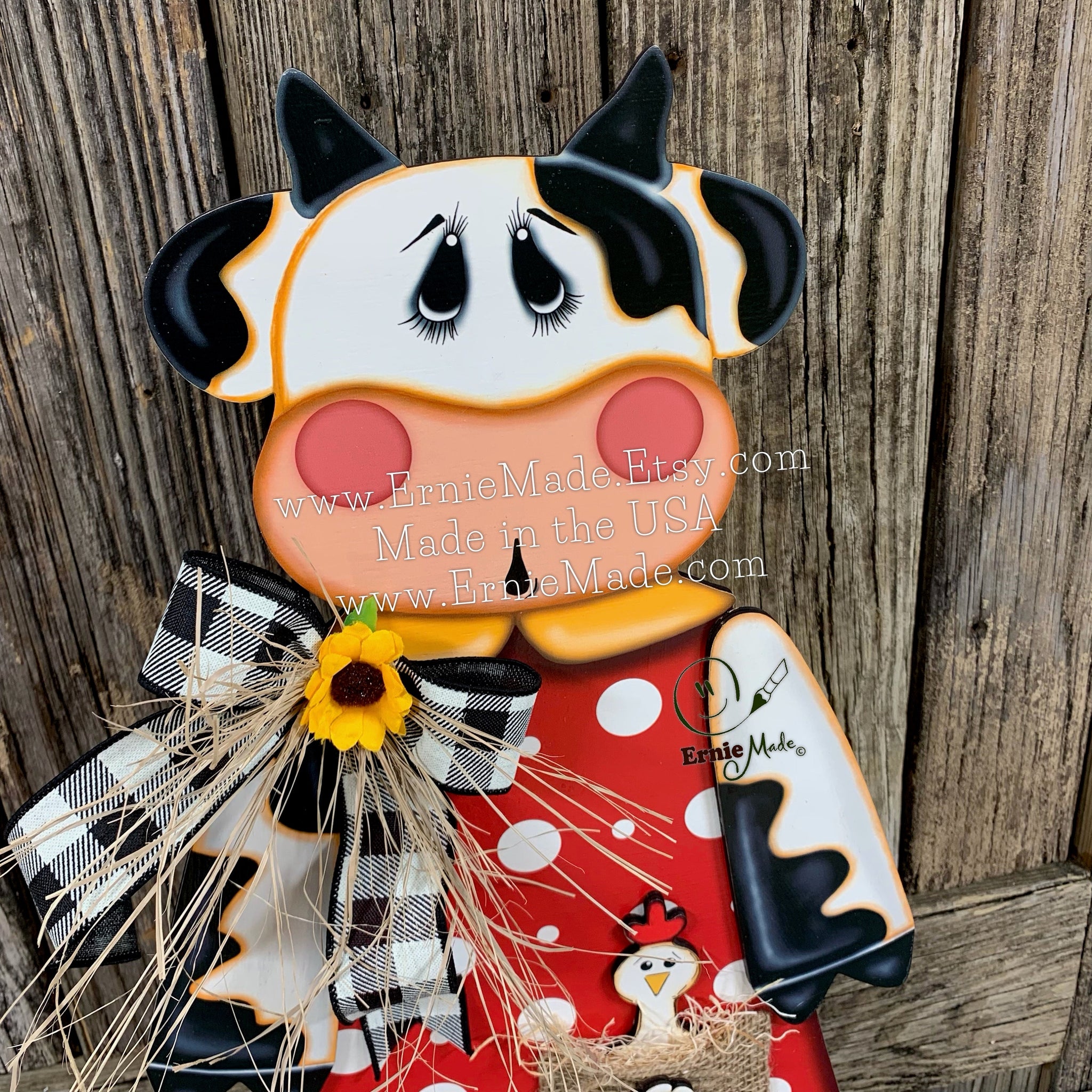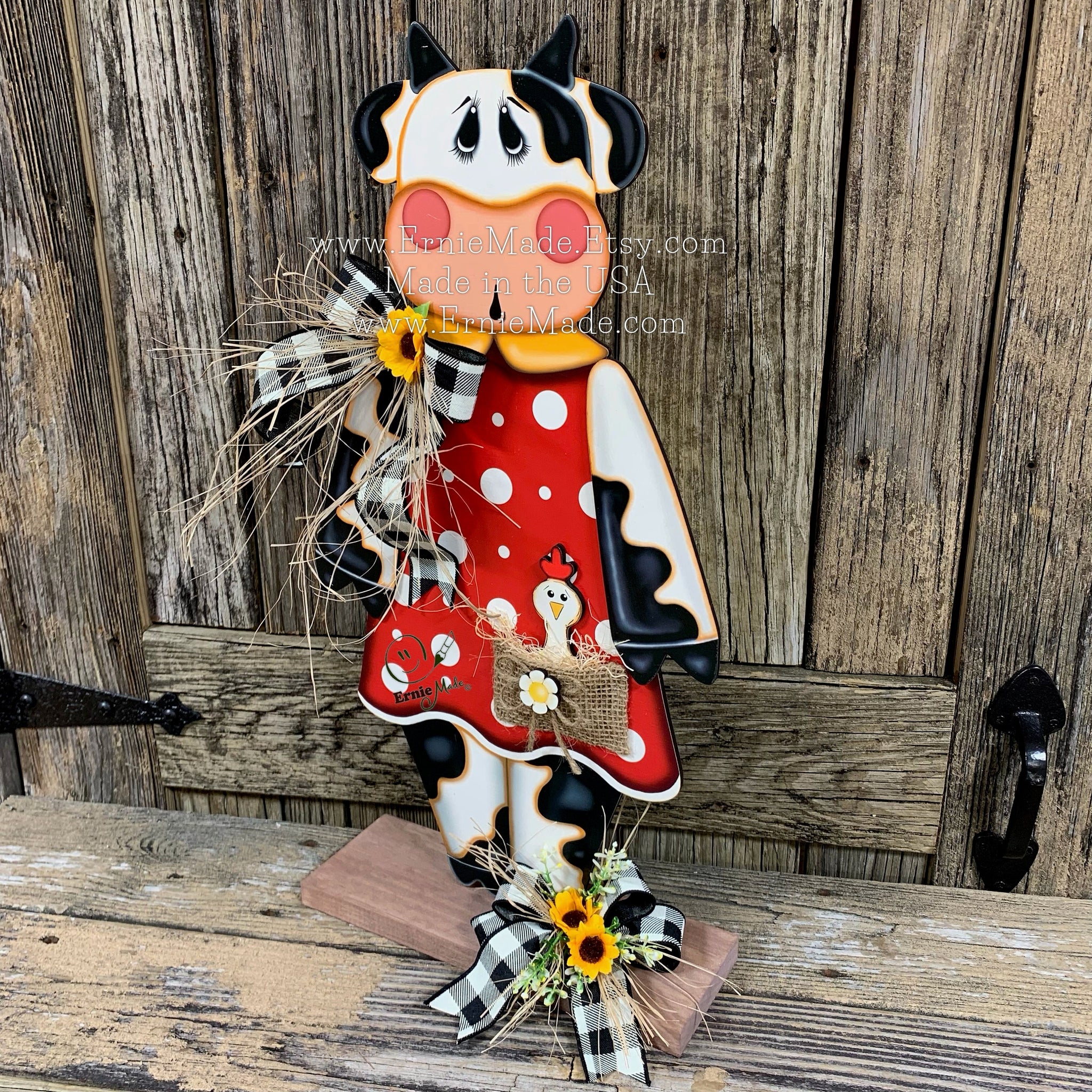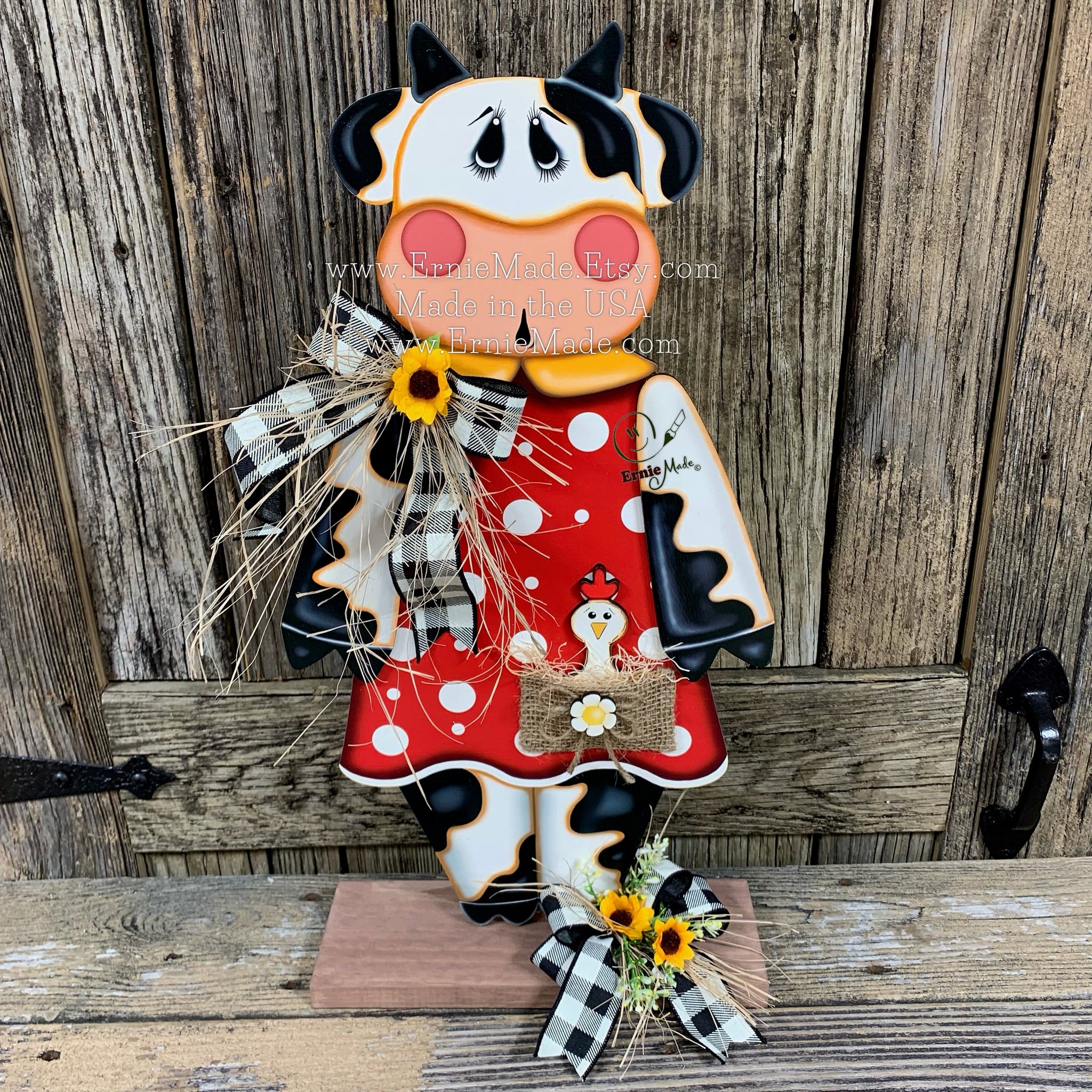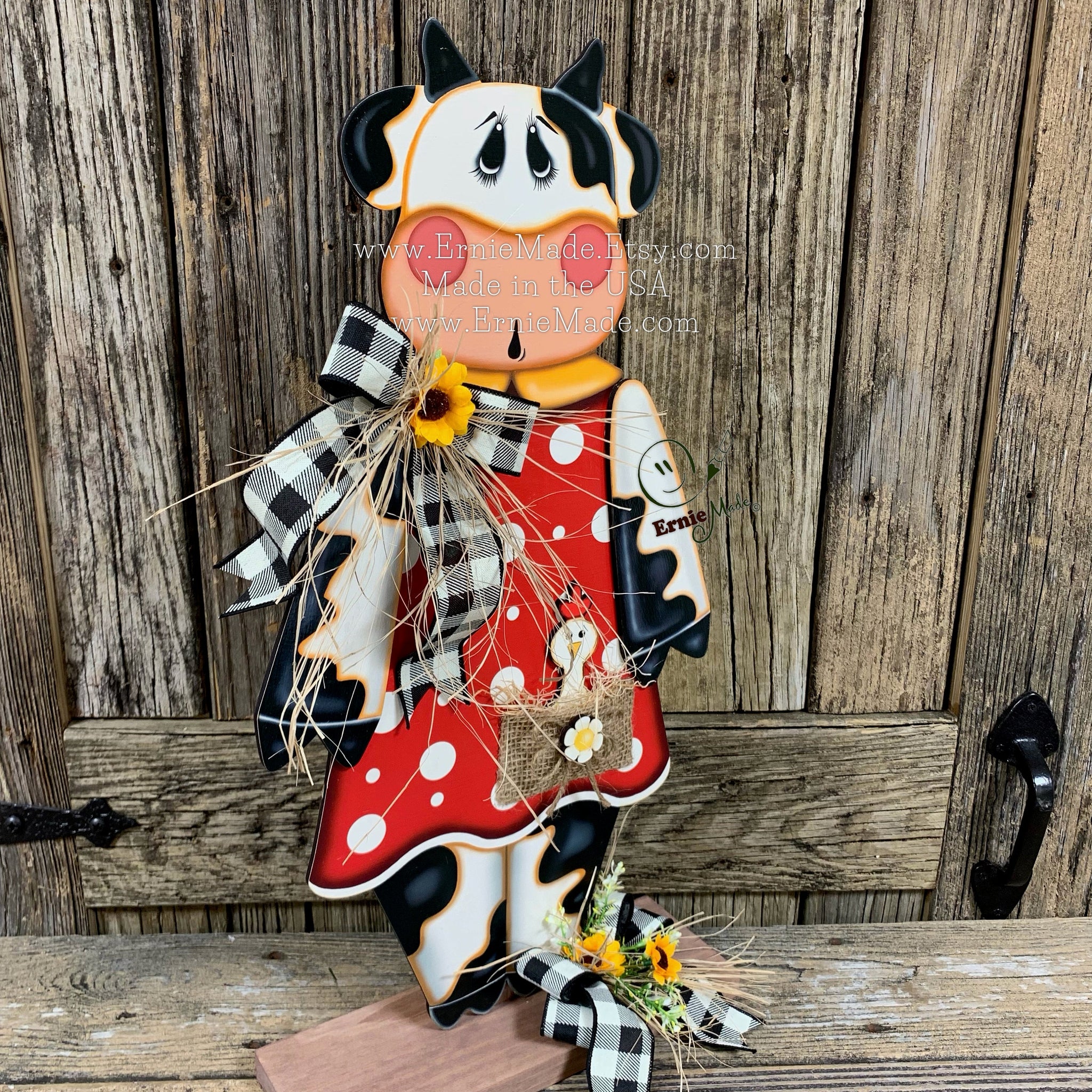 🌻 The cow is all dressed up with her red polka dot dress and embellished ribbons. There is a ribbon and flower option for the embellishments. There are examples of the ribbon and flower variations in the listing pictures.