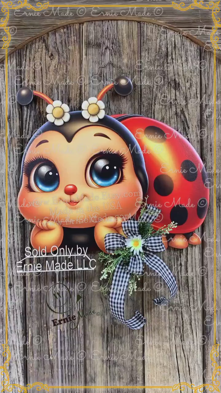 🌼 The Ladybug is constructed of wood and has been sealed for protection. This Wooden Ladybug door hanger is embellished with a bow. This unique design features many details including the Wooden flowers on her antennas giving her a cute whimsical look.