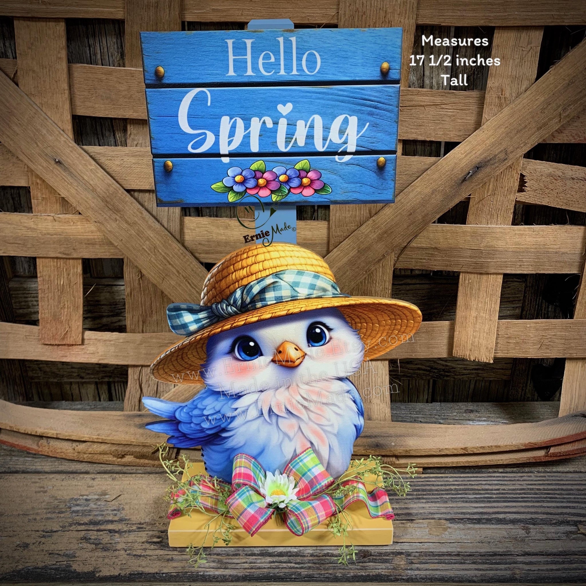 🌸 Welcome Spring with this cute blue bird and hello Spring sign. This sweet blue bird decoration is the perfect accent and can be displayed almost anywhere adding a Spring touch to your home. The fresh Spring colors would match most Spring or Easter decor.